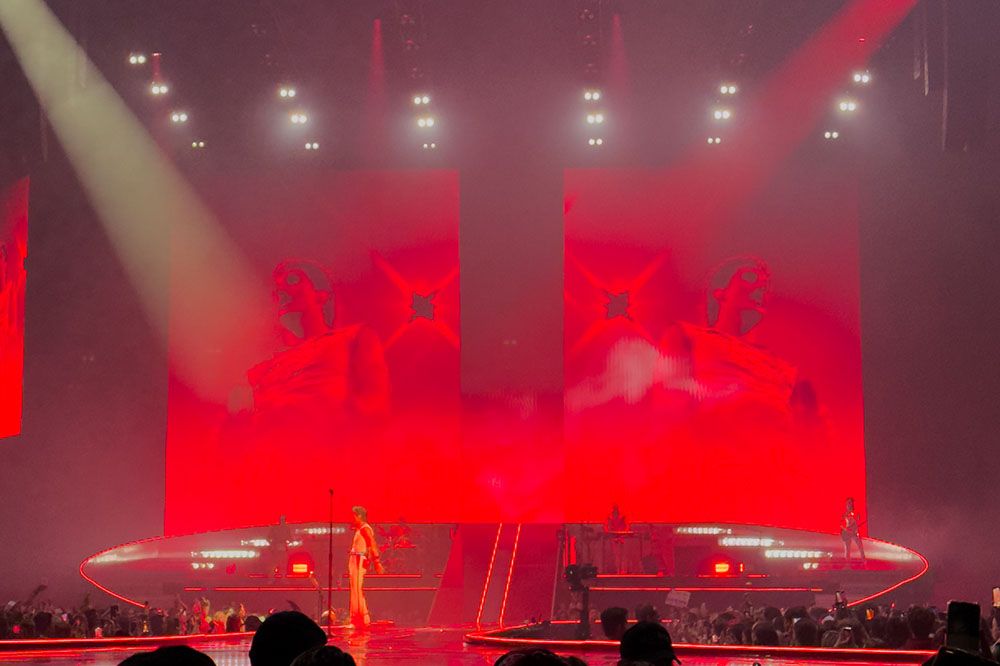 Benson Boone’s American Heart tour stage was a playground for connection and energy. A red ribbon flowed across the arena, symbolizing a shared journey. Two abstract heart-shaped stages at each end brought fans closer from all sides. Industrial textures and soft lighting reflected the album’s spirit, creating a space that feels both expansive and intimate.