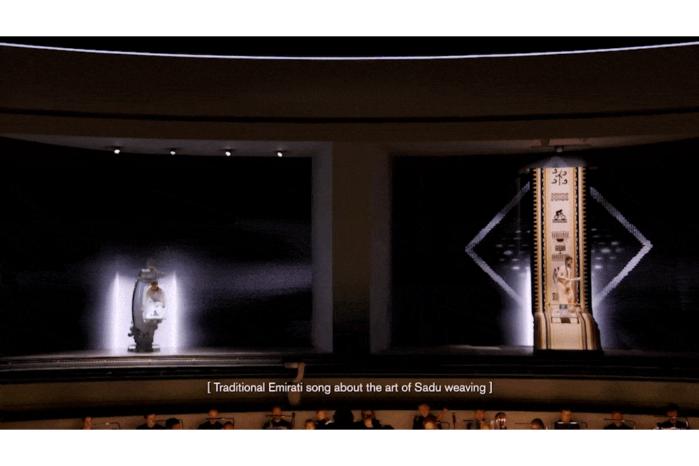 Luke Halls Studio was invited to design the projection for the UAE’s 52nd Union Day ceremony. The show explores the historical traditions of the UAE and how they use technology to further those traditions. Focusing on the country’s vision of a sustainable future. “As we gather here, we envision the threads that weave our futures together. We gather you in the present for the sake of the future. And welcome those who hold a part of this collaboratory thread with us. As our hands combine to weave the next part of our collective tapestry.”